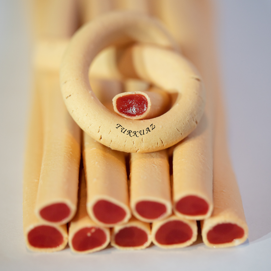 Sirop de glucose, sucre, eau, gélatine bovine HALAL, amidon de pomme de terre modifiée, acidifiants E330, E270, pectine, arôme artificiel, colorants E100